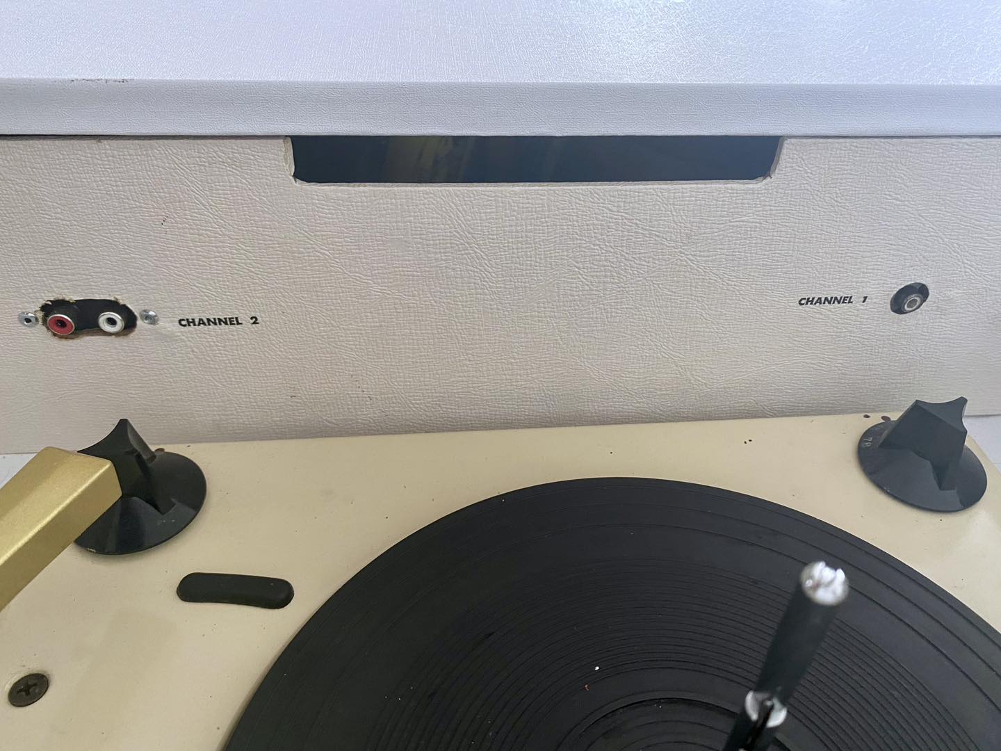 Experience the nostalgia and charm of vinyl with this fully restored 1960’s Coronado three channel stereophonic record player. Featuring a new vinyl wrap and portable tabletop design, this beauty is easy to take with you wherever you go. Its compact size makes it perfect for the office, camping trips, summer cottages, finished man caves, or basements.