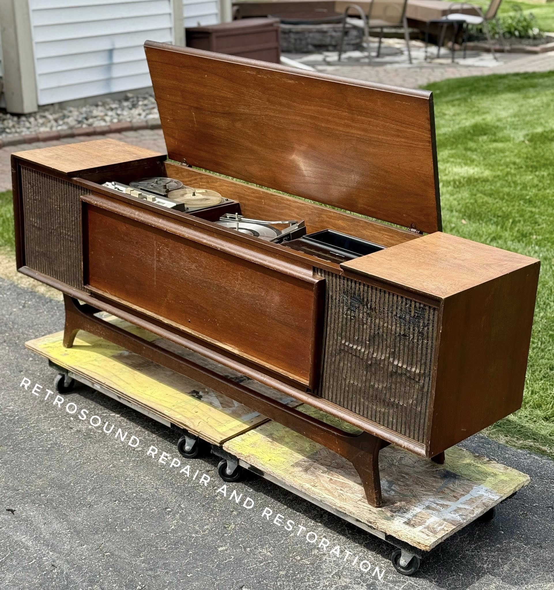 Additionally, it boasts Bluetooth connectivity, allowing for modern functionality while maintaining its original aesthetic. Please note, the reel-to-reel component will be purely for show, serving nostalgic purposes only. This console is not just an audio device; itβs a timeless piece of art that brings a touch of vintage charm to any space.
