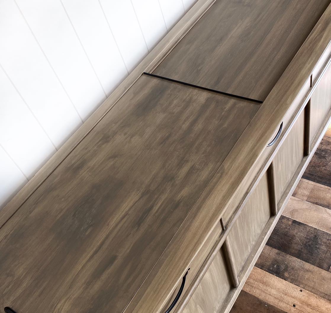 Refinished it to match our client's kitchen table as her inspiration for the Magnavox she purchased from us below. This beauty went to its new forever home today. I’m loving the PotteryBarn modern farmhouse, beachy vibe this unit is giving off. What are your thoughts on this look?